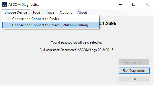 Start the Ascom Diagnostics tool by clicking on its icon!