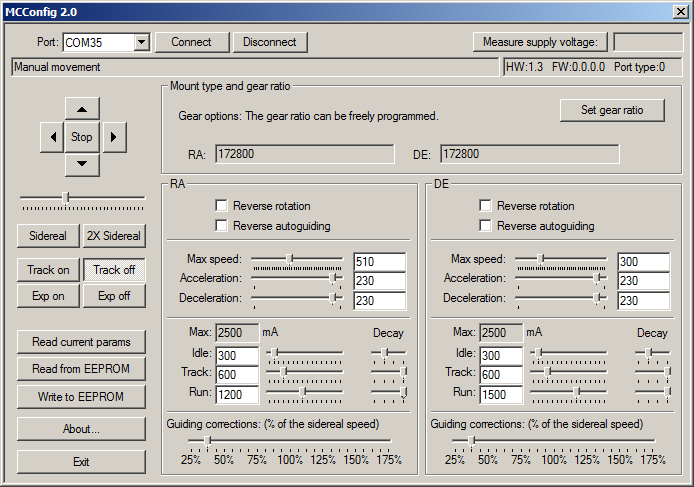 A program called “mcconfig” serves to setup the mount. There are more versions available depending on the version of the MC3/MC4.